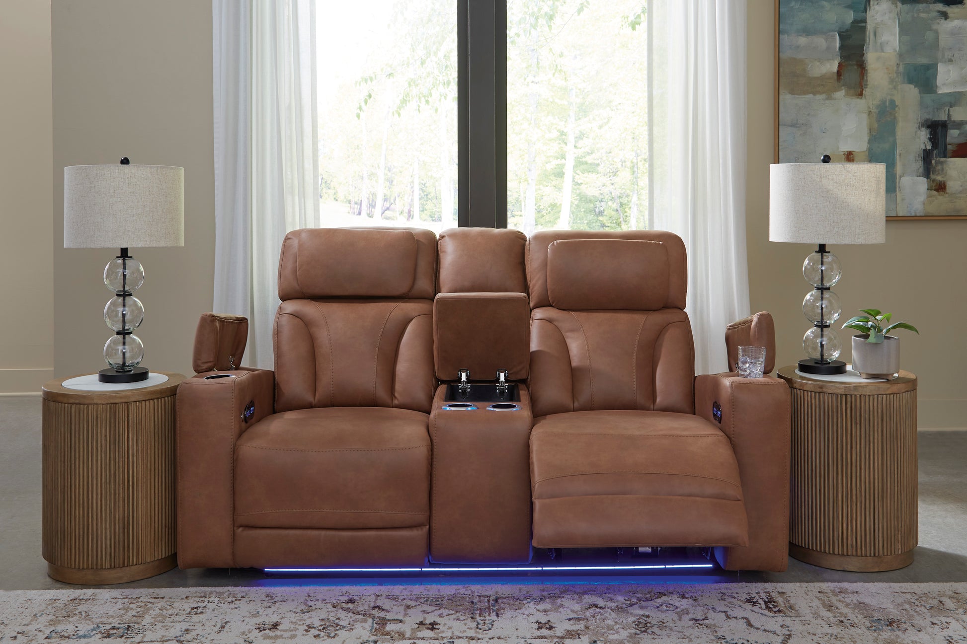 Ready to relax in style? Our luxurious power reclining sofa doesn't just look fantastic—it also delivers creature comforts and fabulous functionality. Adjustable headrests ensure a perfect TV view no matter how far back you recline. Faux leather upholstery, a drop-down table with reading lights and ambient LED lighting go beyond your typical theater-style experience. Movie nights and chill time just got a whole lot sweeter.
