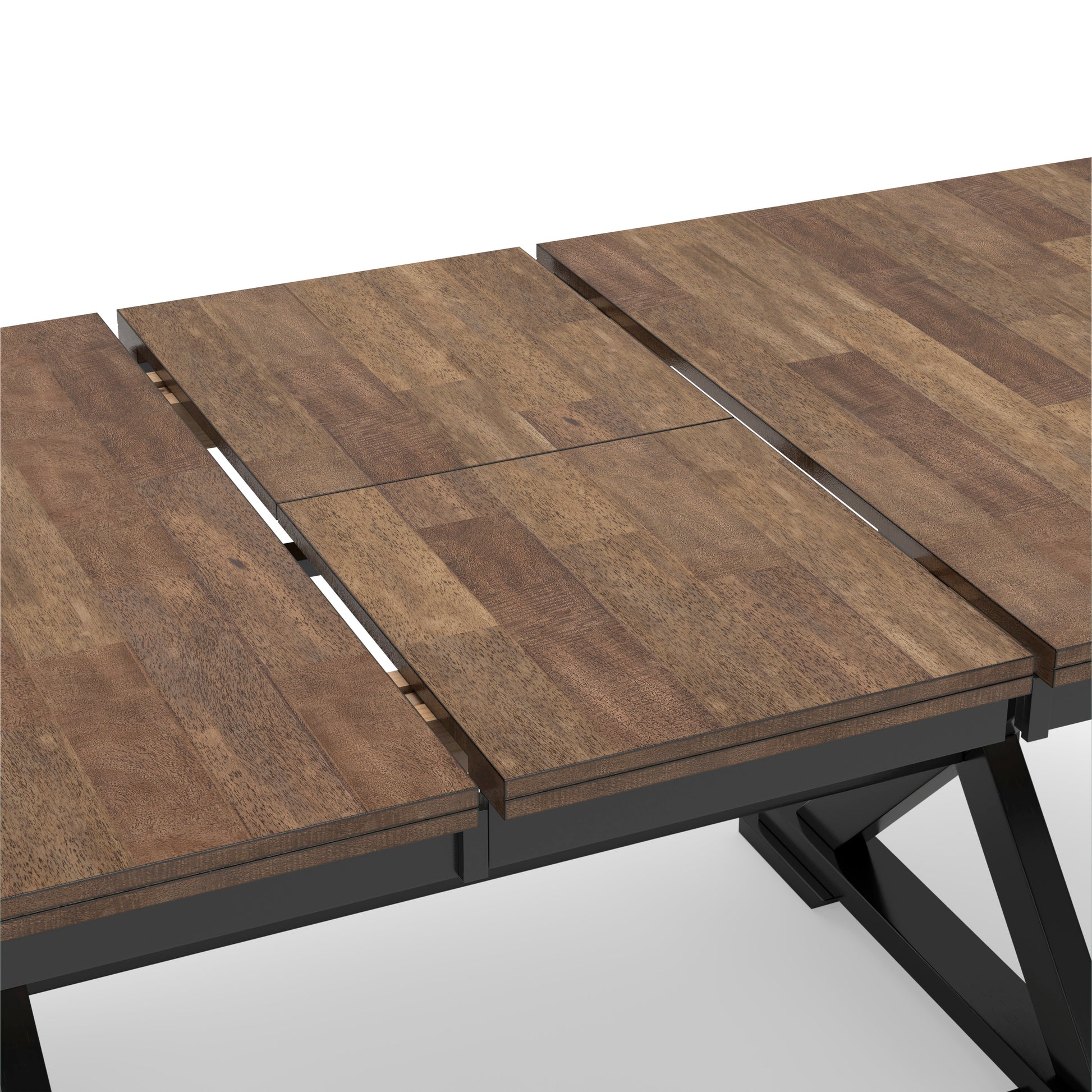 - 2-tone finish (butcher block mango veneer top with deep brown wood tone finish; frame with warm satin black finish)